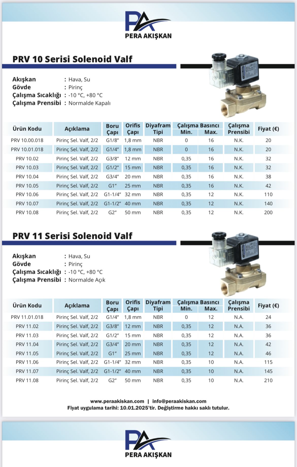 PERA SELENOİD VANA FİYAT LİSTESİ
